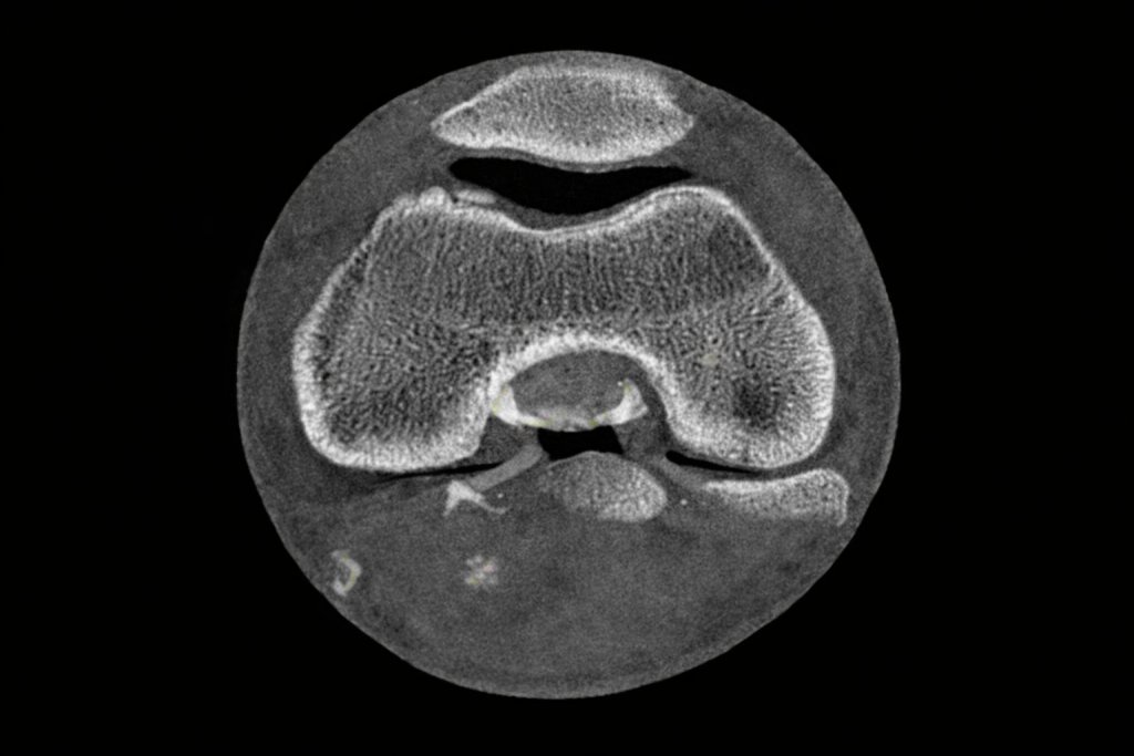 MRI検査をすると、たとえばレントゲンでは見えない膝の半月板などの柔らかい組織が見えます。