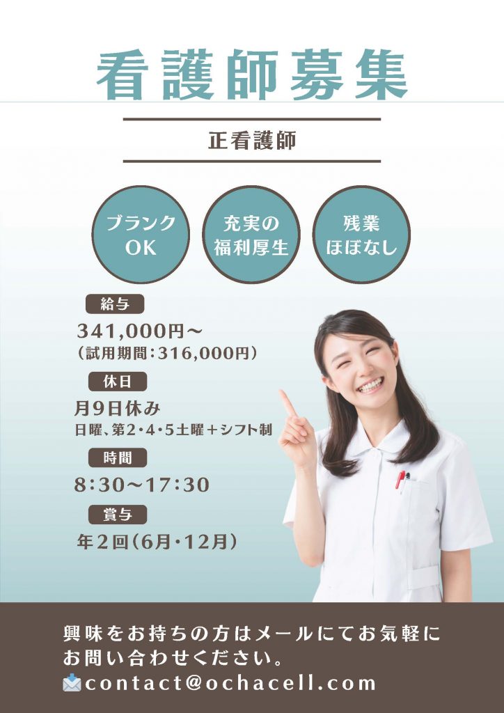 お茶の水セルクリニックでは、一緒に働いていただける看護師を募集いたします。